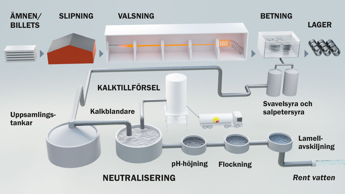 – I processen reagerar kalken med syran vilket verkar för ett återställande av pH-värdet, berättar Anna Smed, som är processingenjör på Fagersta Stainless.